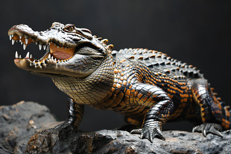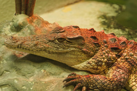 Nice predator crocodile sitting on rock nature reptile wild