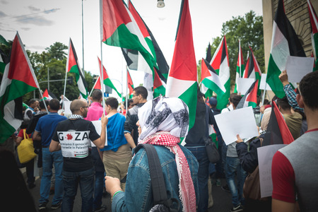 MILAN, ITALY - JULY 26: Pro Palestine manifestation held in Milan on July, 26 2014. People took to the streets to claim Gaza and Palestine freedom against israel war and bombing
