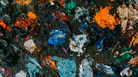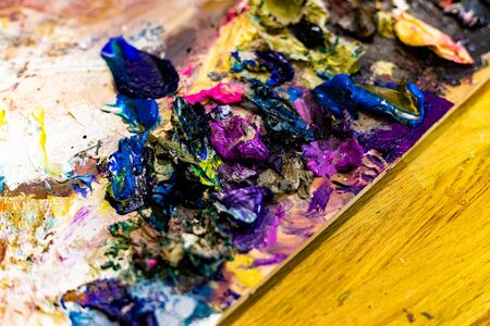 different color dried oil paint. colorful acrylic paint. modern art concept. painter palette