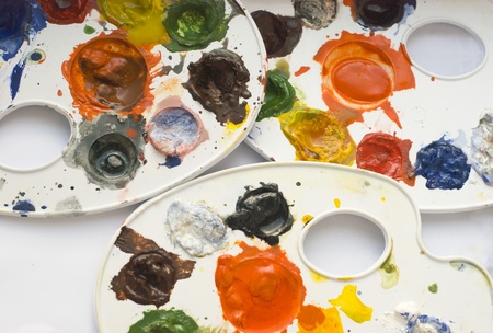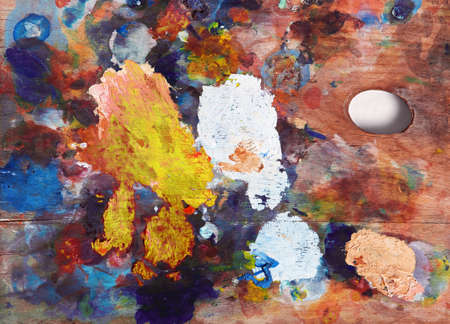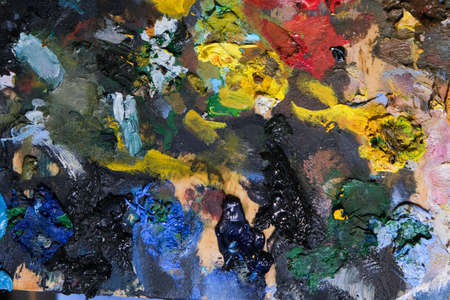 Oils paint spread on painter's palette. Mixing different colors of paints on the palette to paint a picture. IT is not a complete picture