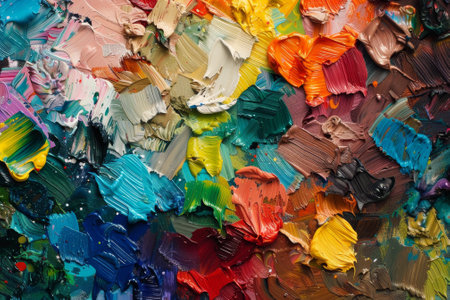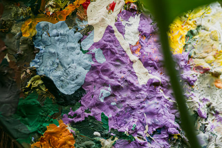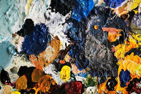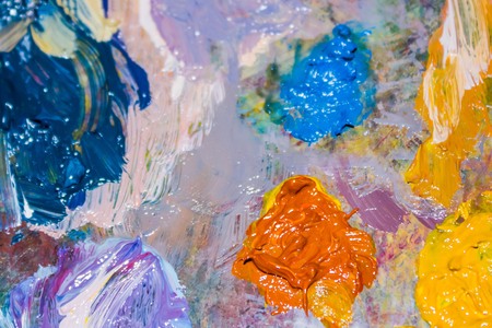 macro artist's palette, texture mixed oil paints in different colors and saturation studio