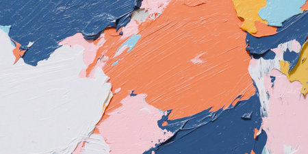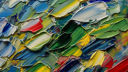 Vibrant layered palette knife texture of bold paint strokes for artistic background design