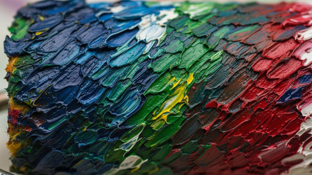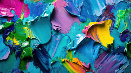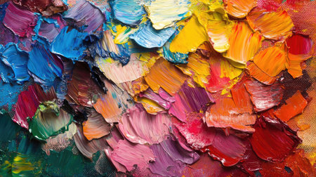 Vibrant paint texture showcasing a variety of colors and styles on canvas. Ideal for creative projects, backgrounds, and artistic inspiration.