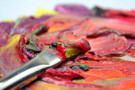 Oil painting in multicolored tones. Conceptual abstract closeup of a painting by oil and palette knife on canvas. The picture is painted in oil.