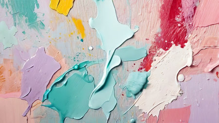 Abstract colorful oil painting on canvas. Oil paint texture with brush and palette knife strokes. colorful wallpaper. Macro close up acrylic background.
