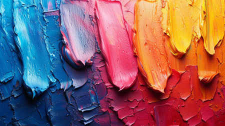 This captivating close-up image showcases the intricate texture of vibrant paint layers on a canvas, highlighting artistic creativity and bold colors.