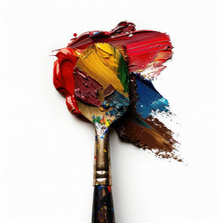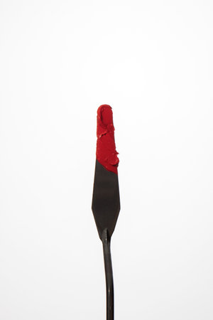 A close-up of an artist's knife surrounded by vibrant oil paints on a white surface, showcasing the beauty of color mixing and abstract artistry. Perfect for creative projects.