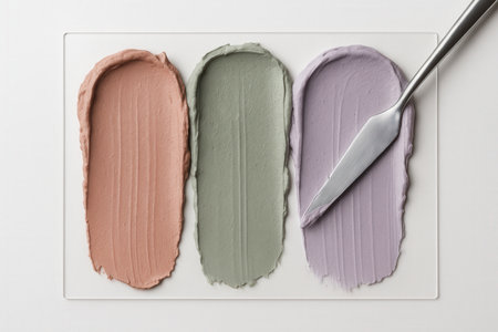 Pastel Cosmetic Texture Swatches With Palette Knife On White Surface