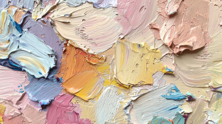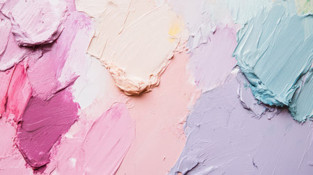 Various soft pastel shades blend together on a textured surface showcasing an abstract art style. The delicate tones evoke a calming ambiance.