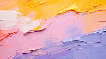 Warm pastel amber strokes flow across a textured surface, blending seamlessly with soft shades of pink and lavender. This artwork captures a calming atmosphere with gentle color transitions.