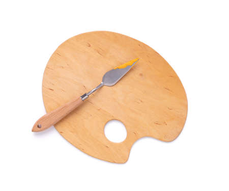 Palette knife for art painting isolated on white background. Palette and knife for oil painting
