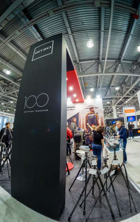 MOSCOW, RUSSIA - APRIL 21, 2017: Booth of Gitzo company at PhotoForum 2017 trade show and exhibition in Moscow, Russia on April 21, 2017.