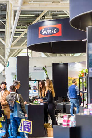 Milan, Italy. Visitors to the fair -TUTTOFOOD- walk among the stands of food producers from all over the world