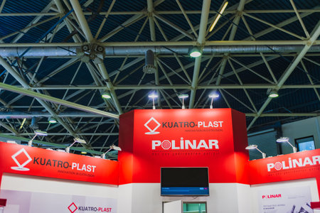 Moscow, Russia - January 28-31, 2020: International specialized exhibition of plastics and rubbers. Expo products manufacturing and recycling