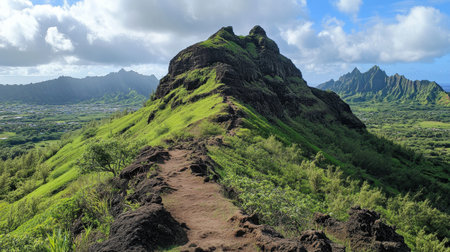 Mountain top views in Oahu. Moanalua Valley Trail in hawaii. High quality photo