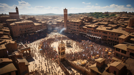 Crowds of people in Piazza del Campo in Siena, Italy