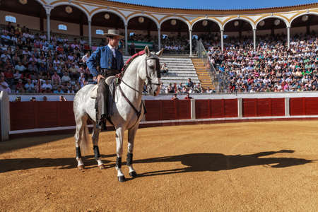 MALAGA, SPAIN - AUGUST 12: bullfight in La Malagueta on August 12, 2014 in Malaga, Spain. The Malagueta bullring was built in 1874 by JoaquÃn Rucoba and it was inaugurated on June 11, 1876.