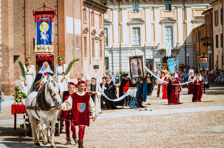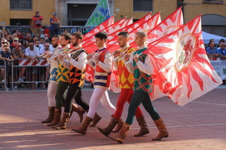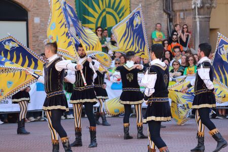 Ferrara, Italy - 10 may 2015 - Palio, the city celebrates with competitions of the flag wavers and the parade of the districts