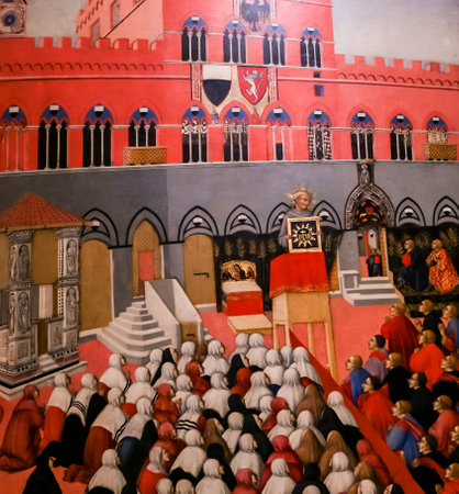 SIENA, ITALY - AUGUST 16: Parade before start of annual traditional Palio di Siena horse race in medieval square Piazza del Campo August 16, 2014 in Siena, Italy