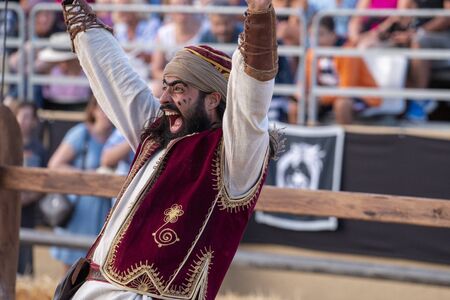 SILVES, PORTUGAL - August 11th, 2019 : Medieval costume characters in Medieval fair event.