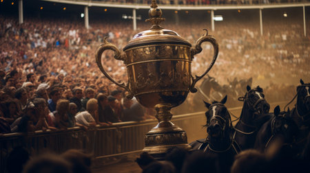 roman mosaic depicting a chariot race in a grand arena, created with generative ai