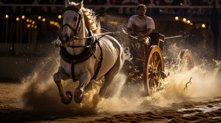 Roman Emperor engaging in a chariot race at a Roman circus