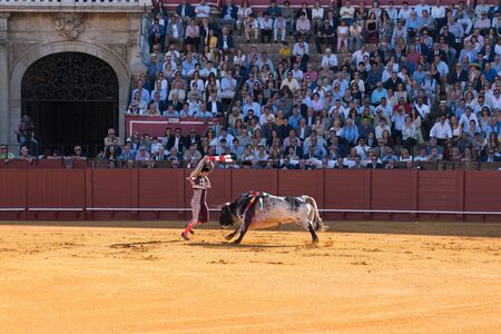 Bullfighting match in Plaza de toros de Sevilla (Bullring in Seville), Spain