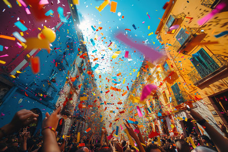 background of confetti in the air celebration in the city.