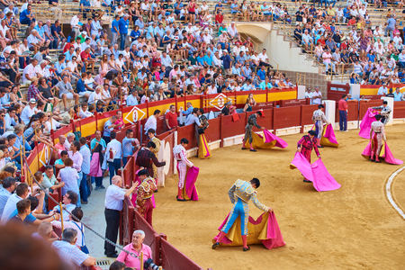 Alicante / Spain - 08 03 2018: People are preparing to watch bullfighting and bullfighters are stretching