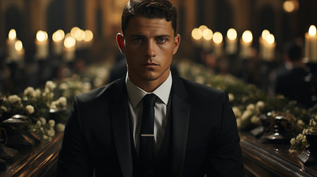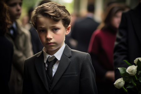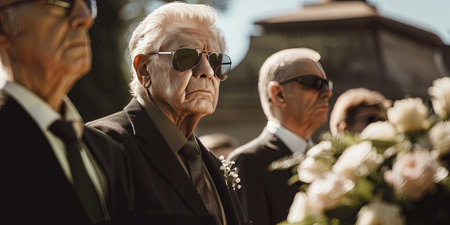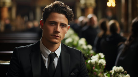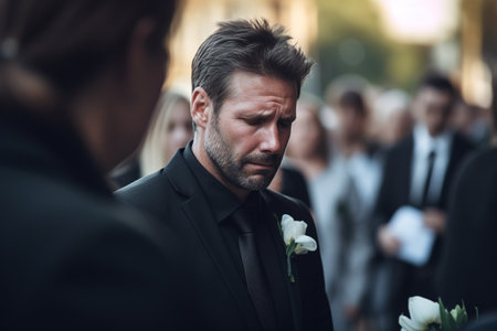 Person in a Black Suit with Funeral Background in a Group. High quality photo
