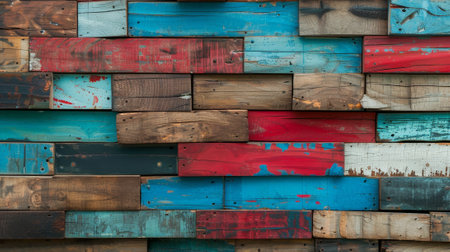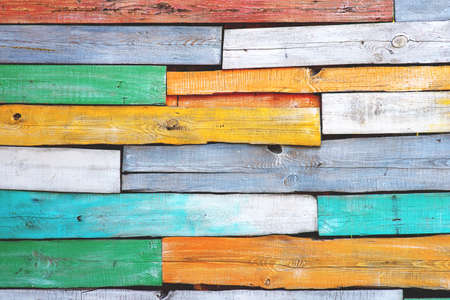 Colorful painted wood wall background texture. Colorful wooden planks.