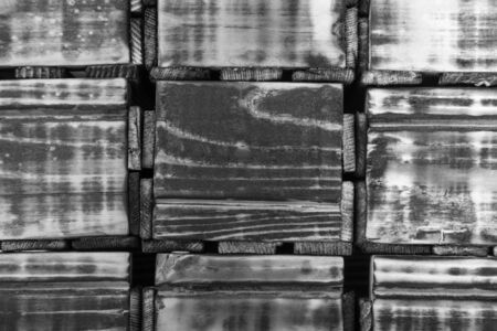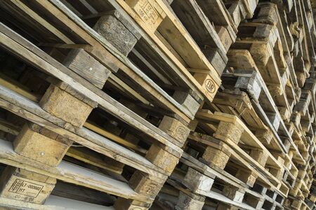 A stack of old wooden pallets for loading. Logistics and cargo delivery.