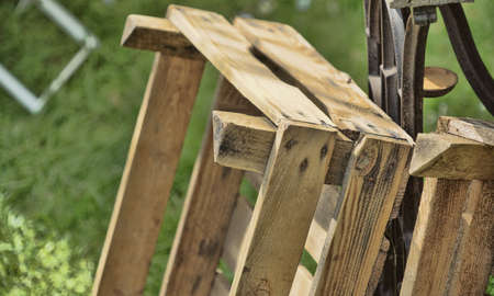 Wooden pallets. Tara. Wooden planks, hammered together by nails.