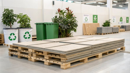 Panels organized neatly on a wooden palette emphasizing ecofriendly manufacturing..