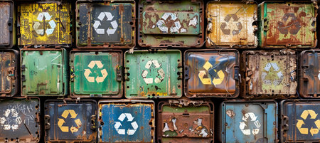 In a vibrant urban recycling center, workers tirelessly sort and process materials. Bright yellow bins filled with recyclable items showcase the commitment to waste reduction and sustainability.