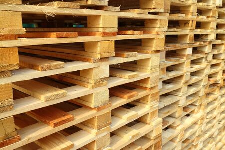 background of many wooden pallets for the transport of the goods