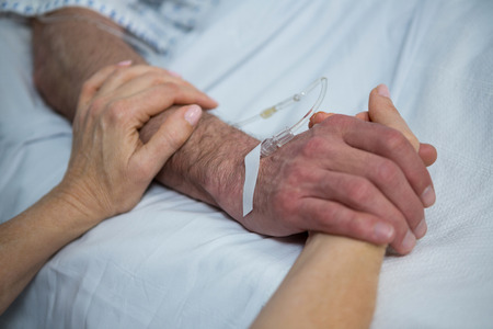 Elderly woman holding hands as a symbol of support and assistance in the hospice with euthanasia