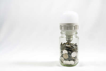 Financial concept, A malaysia ringgit coin in transparent glass bottle isolated white background