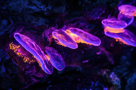 Glowing luminescent mushrooms showcase vibrant colors and unique textures