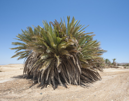 Large date palm tree Phoenix dactylifera in an isolated arid desert landscape