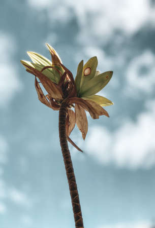 Abstract flower dying design tonal desaturated conceptual photo dreary element against sky