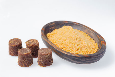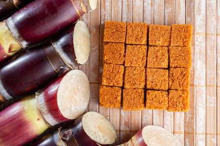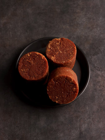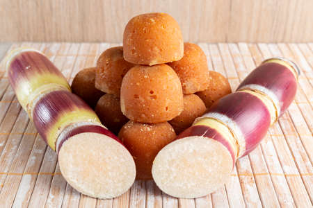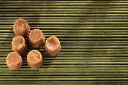 Jaggery traditional cane sugar cube on table