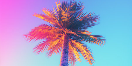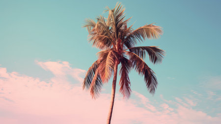 palm tree on blue sky background. Retro color style.
