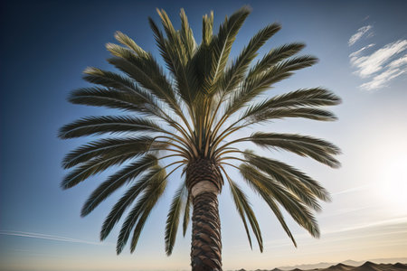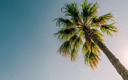 Tropical Serenity: Captivating Low Angle Shot of Majestic Palm Tree in AR 3:2