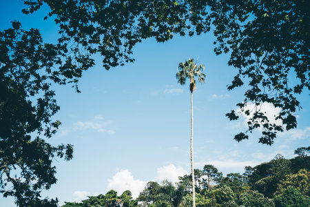 Tropical Serenity: Captivating Low Angle Shot of Majestic Palm Tree in AR 3:2