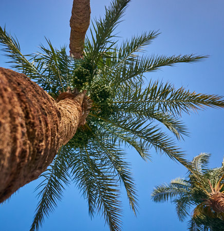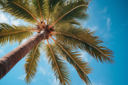 Tropical Serenity: Captivating Low Angle Shot of Majestic Palm Tree in AR 3:2