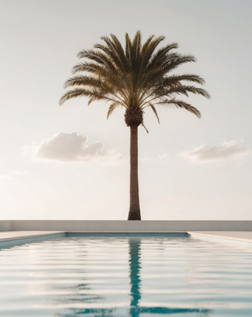 Tropical paradise with palm trees and calm waters offers a serene escape for relaxation and rejuvenation in a stunning coastal environment