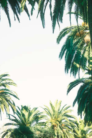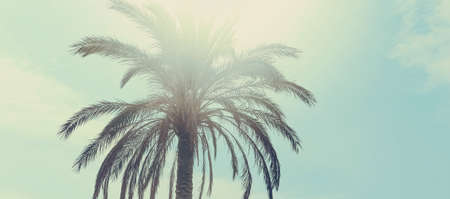 Palm trees against sky. retro style image. travel, summer, vacation and tropical beach concept.