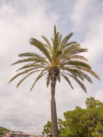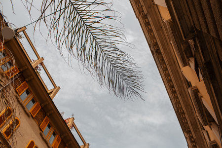 Tel Aviv Israel February 21, 2020 View of palm tree growing in the streets of Tel Aviv in the afternoon