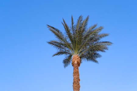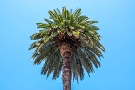 Palm tree with green leaves on blue background. Palm Trees - Perfect palm trees against a beautiful blue sky